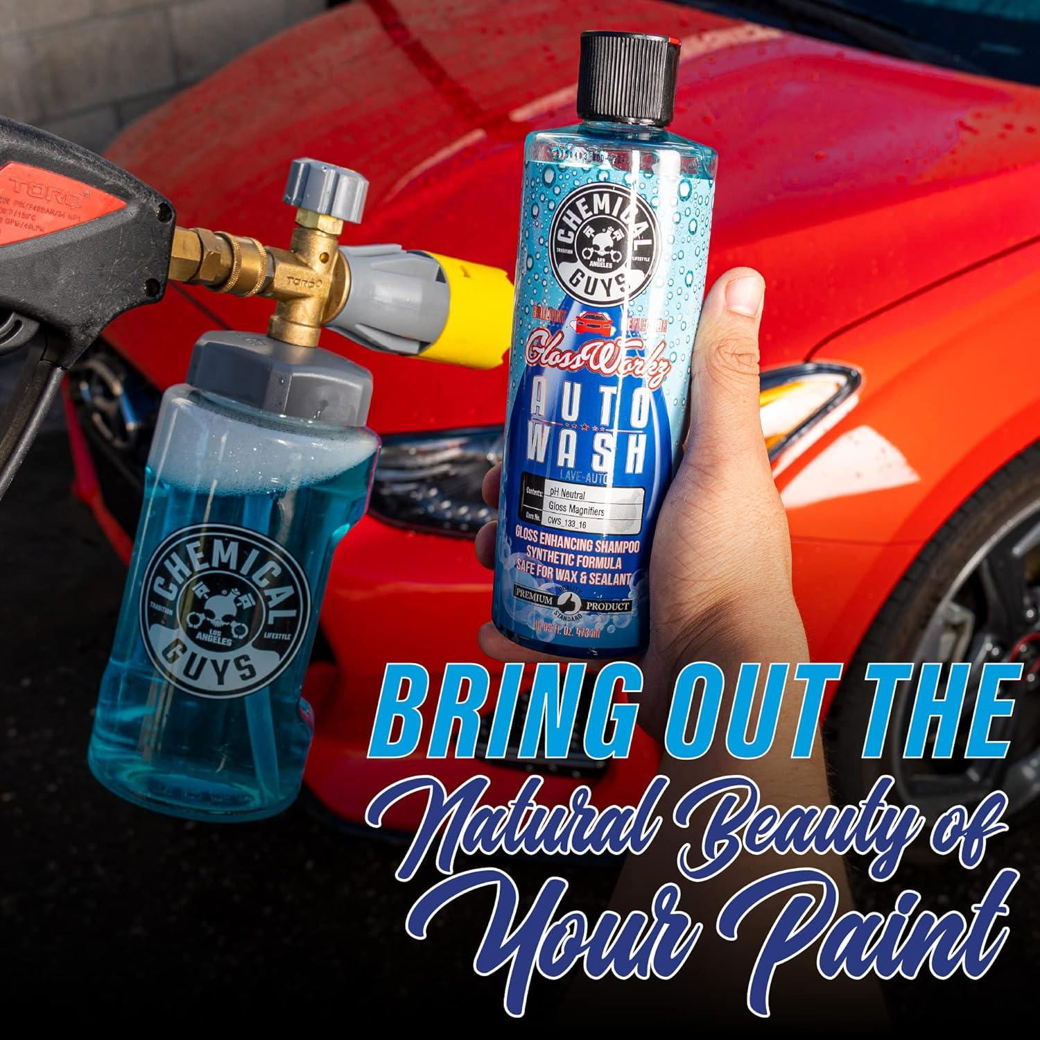 Chemical Guys CWS_133_16 Glossworkz Gloss Booster Car Wash Soap (Works with Foam Cannons, Foam Guns or Bucket Washes) Safe for Cars, Trucks, Motorcycles, RVs & More, 16 fl oz, Watermelon Scent(SOAP)