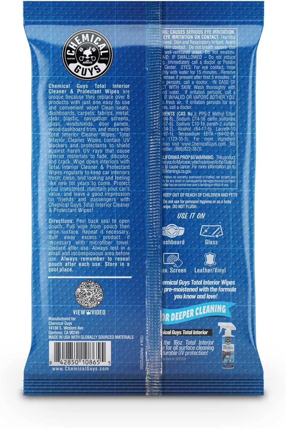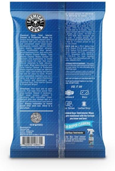 Keep your car’s interior looking and feeling like new with Chemical Guys Total Interior Canister Wipes. These versatile, all-in-one wipes are perfect for quick, easy cleaning and protection on the go. Designed for use on a variety of surfaces—leather, vinyl, plastic, glass, and more—Total Interior Canister Wipes effortlessly remove dirt, dust, fingerprints, and grime without leaving behind any greasy residue. The quick-drying formula ensures a streak-free, smooth finish, while built-in UV protection helps prevent fading, cracking, and discoloration, extending the life of your car’s interior. With a convenient 30-count canister, you’ll always have a reliable solution for maintaining a spotless, fresh-looking vehicle interior, whether you’re on a road trip or simply running errands. Keep your ride looking its best with Chemical Guys Total Interior Canister Wipes—your go-to solution for interior detailing.