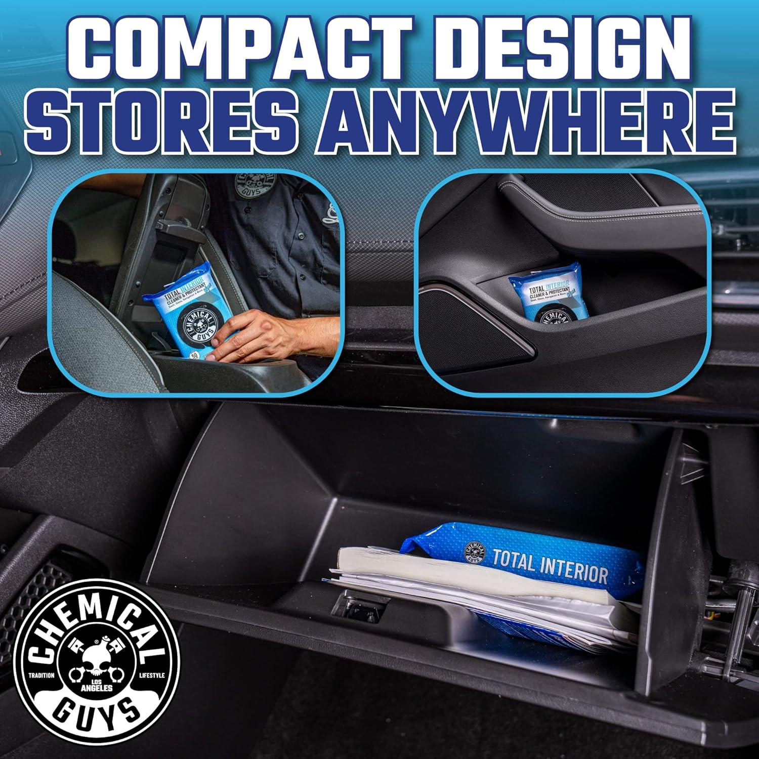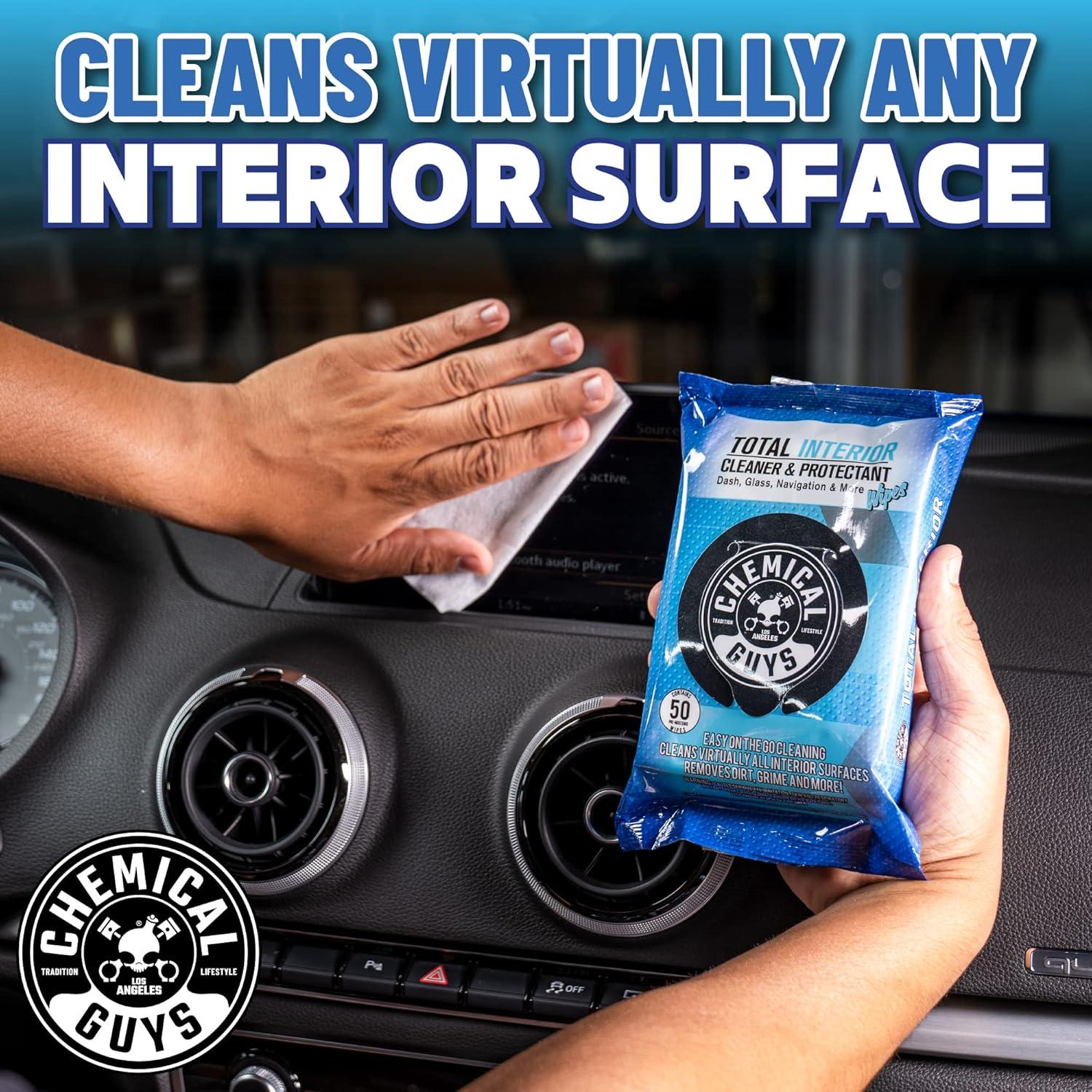 BRAND NEW FROM CHEMICAL GUYS: Total Interior Canister Wipes clean and protect car interiors, including dashboards, seats, and door panels, leaving a fresh, streak-free finish.