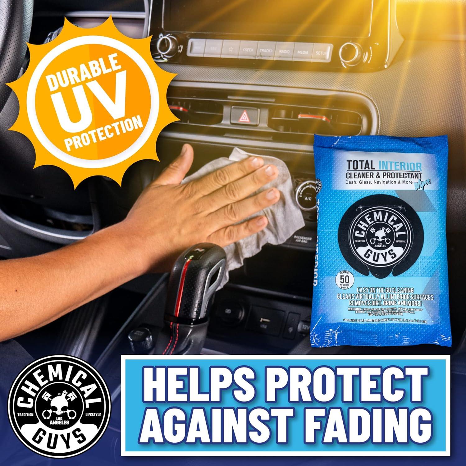 Chemical Guys Total Interior Cleaner & Protectant Canister Wipes, Great for Cars, Trucks, SUVs, RVs, & More (30 Ct) – PMWCSPI22030(50 Count (Pack of 1))